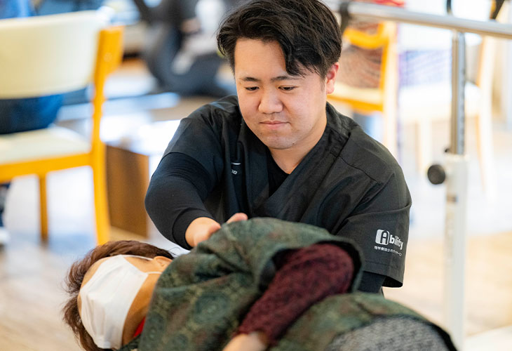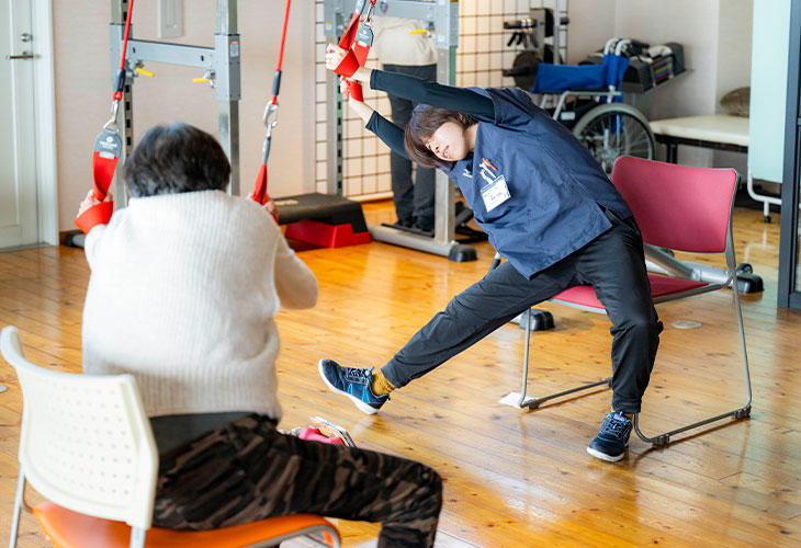 理学療法士が設計したプログラムに基づき、専門スタッフがマンツーマンの形でサポート。痛みへの対処や、特定の動作の改善など、あなただけの課題に集中して取り組めます。