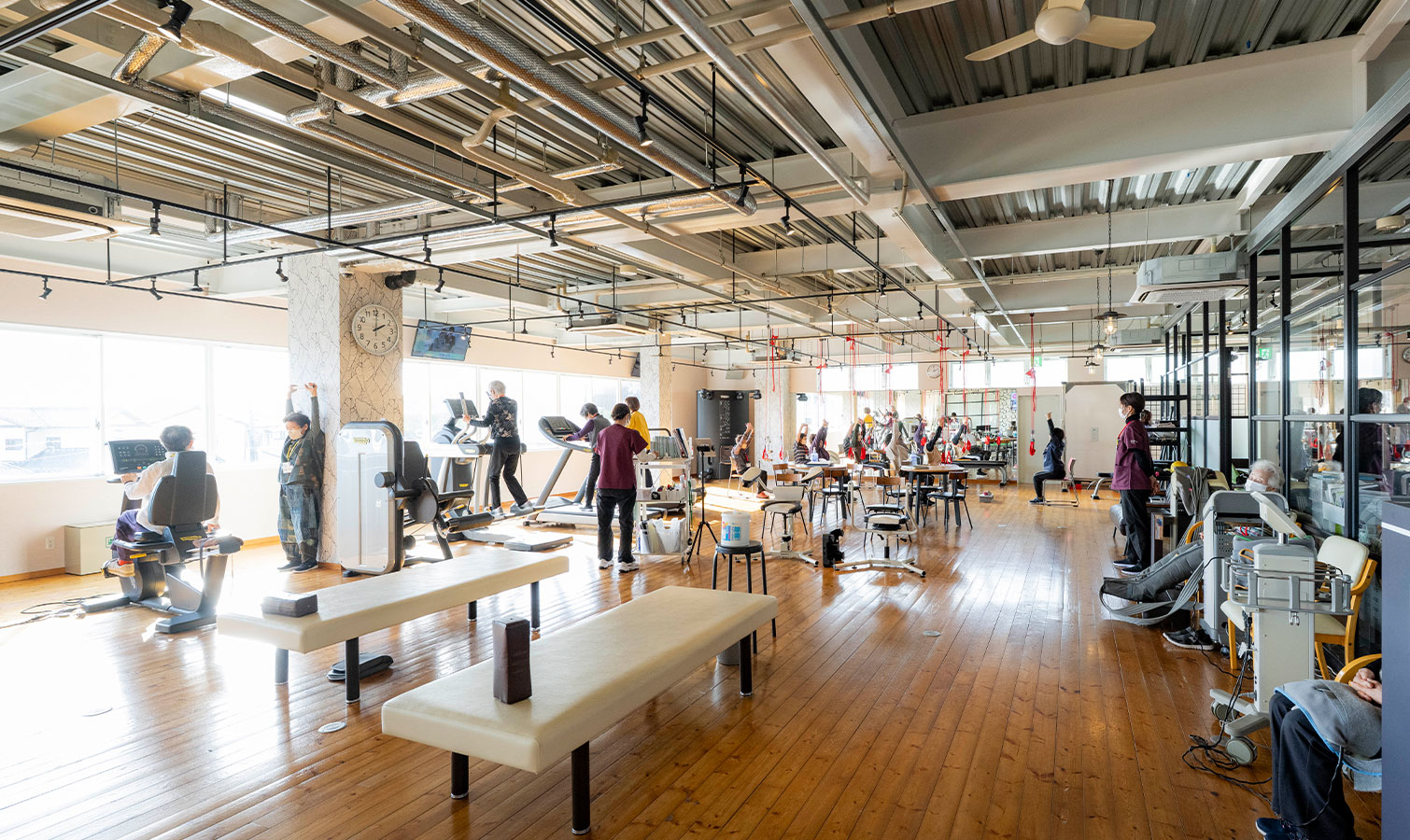 1階は、お一人おひとりの身体特性に合わせた個別リハビリの専用フロアです。
